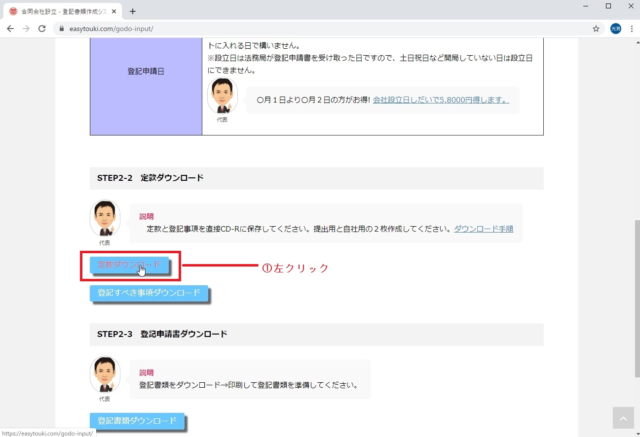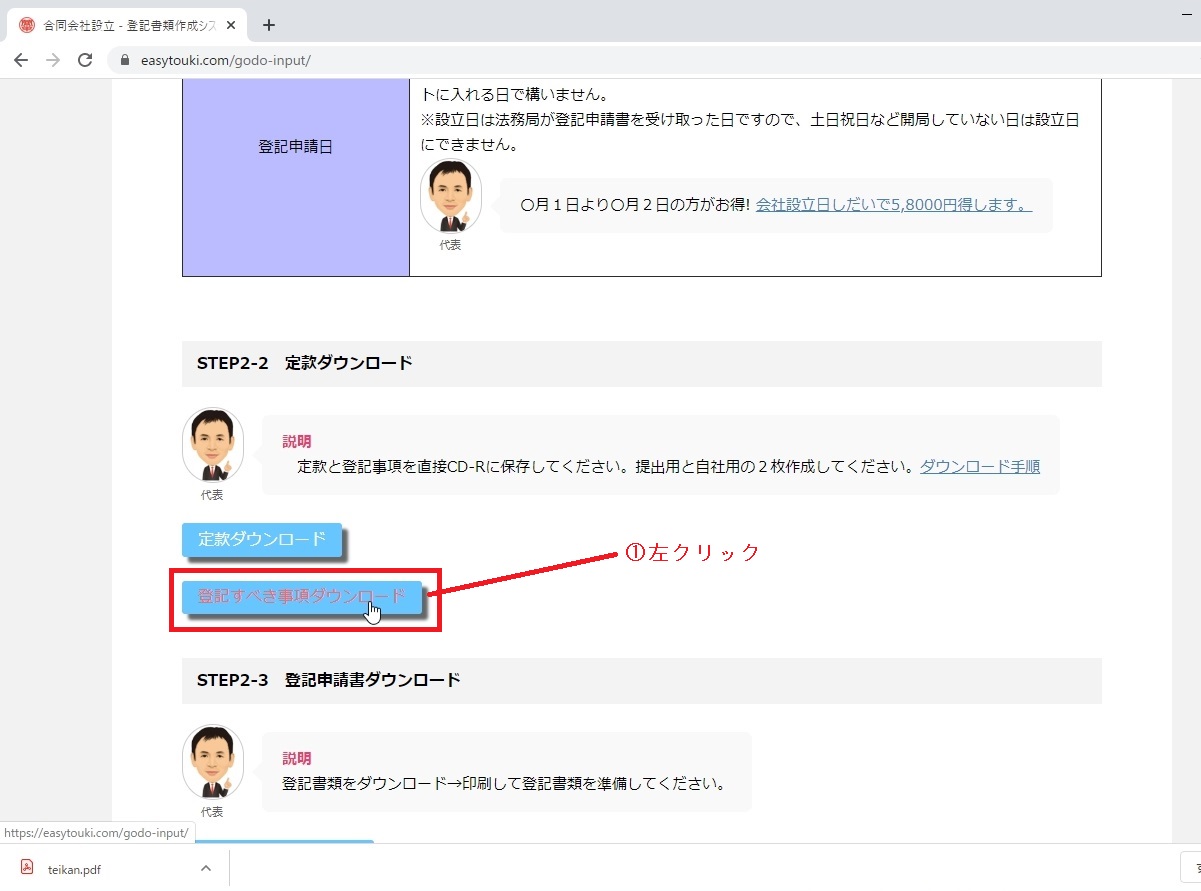 3.登記すべき事項をダウンロードする。