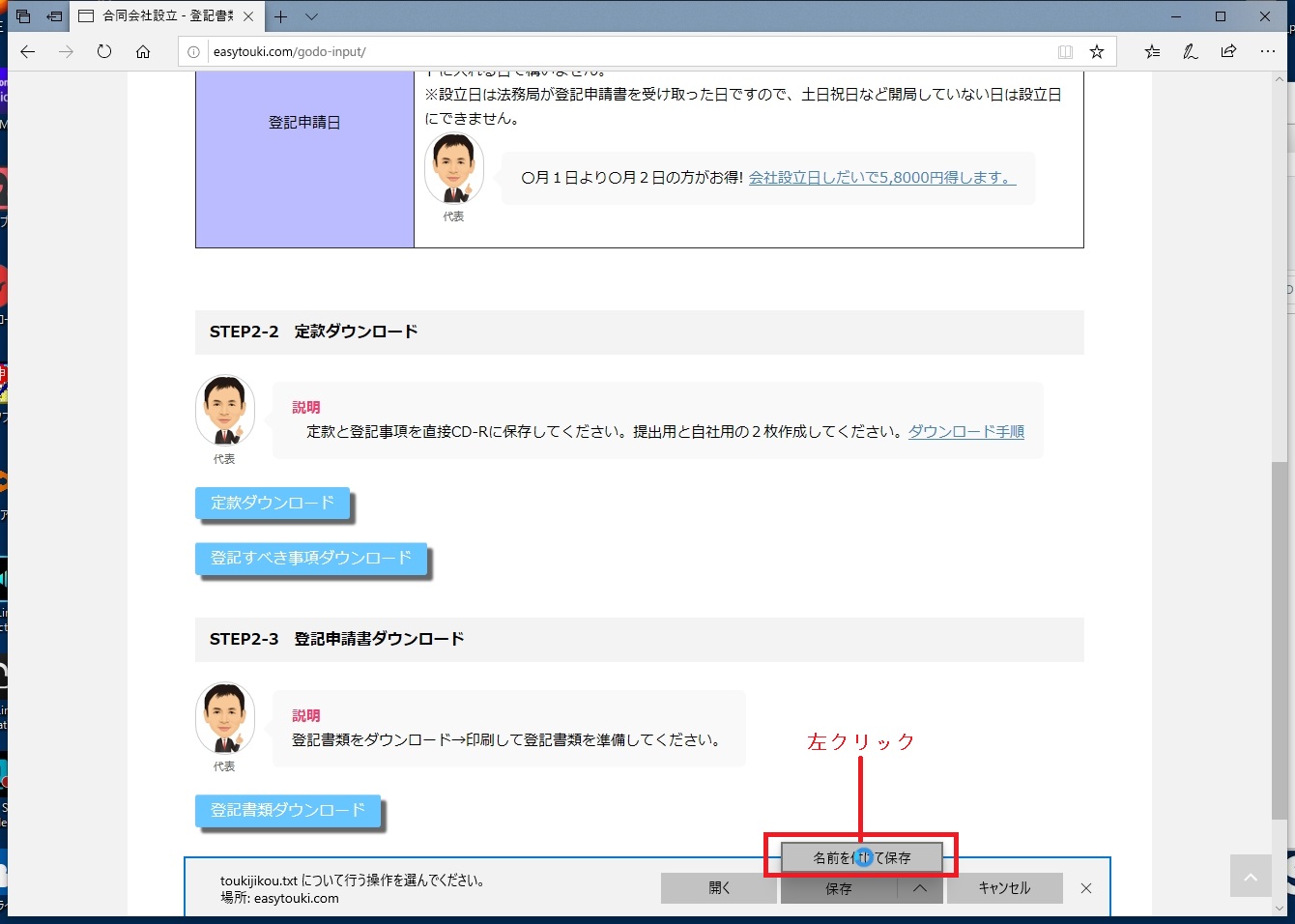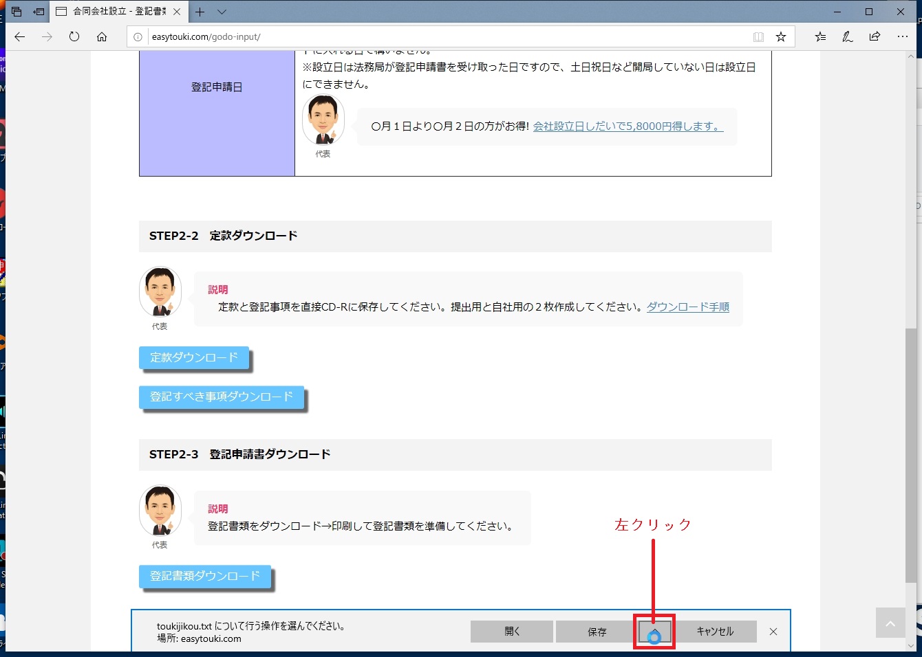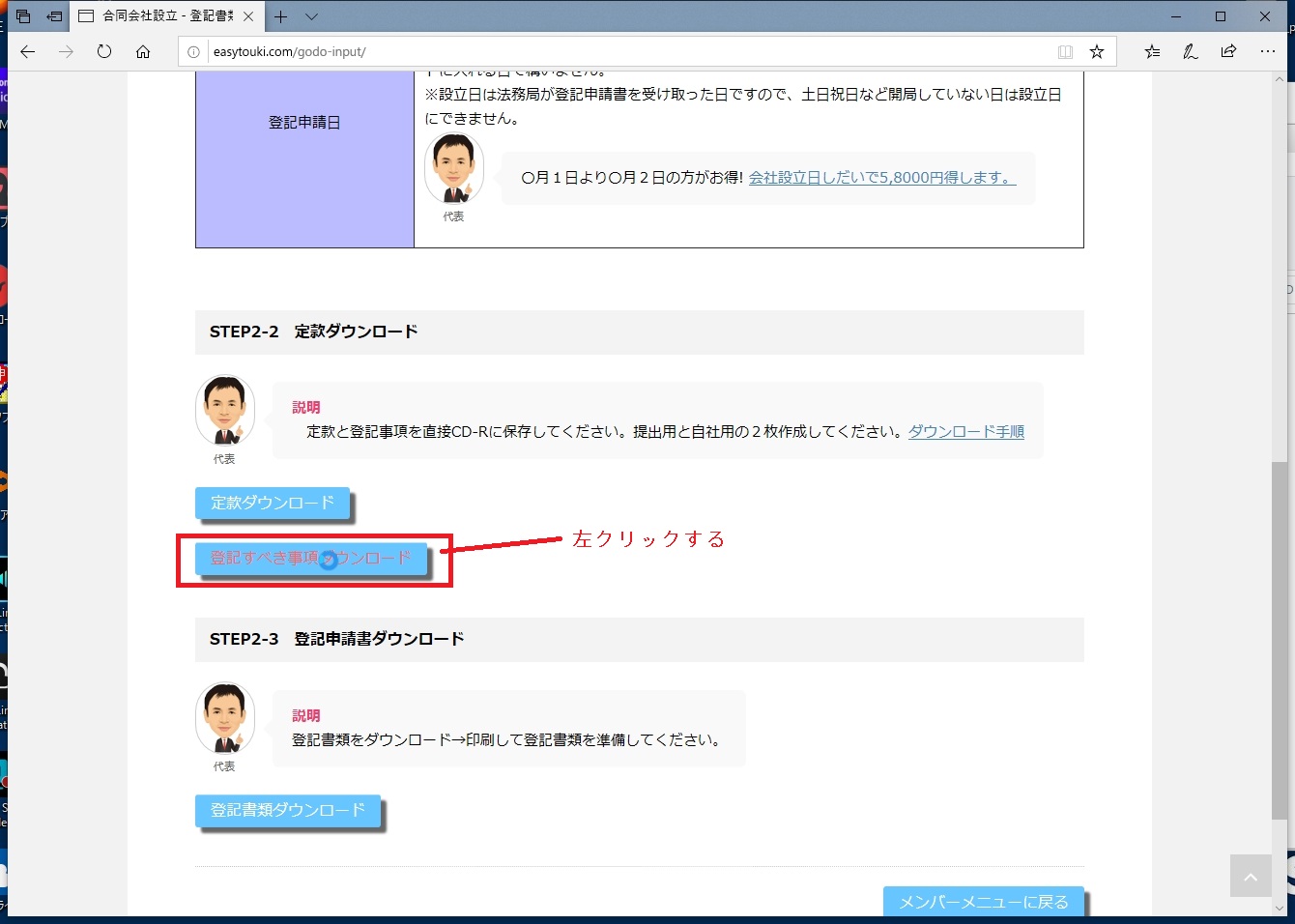 ①「登記すべき事項ダウンロード」を左クリックしてください。