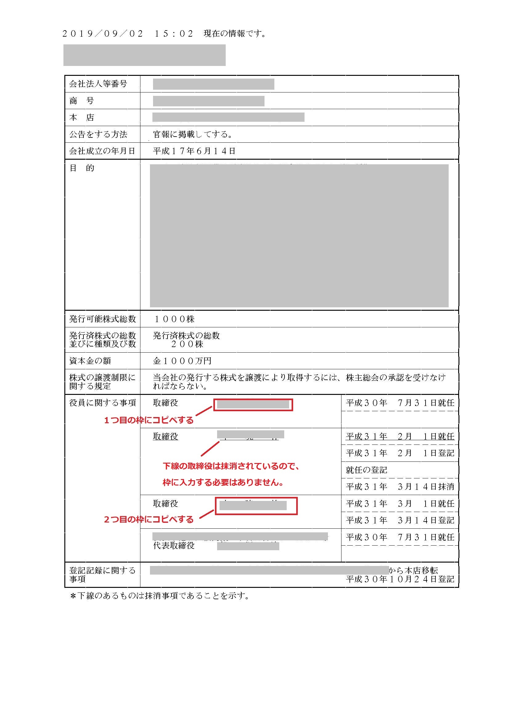 取締役の氏名は登記簿を参照して入力してください。