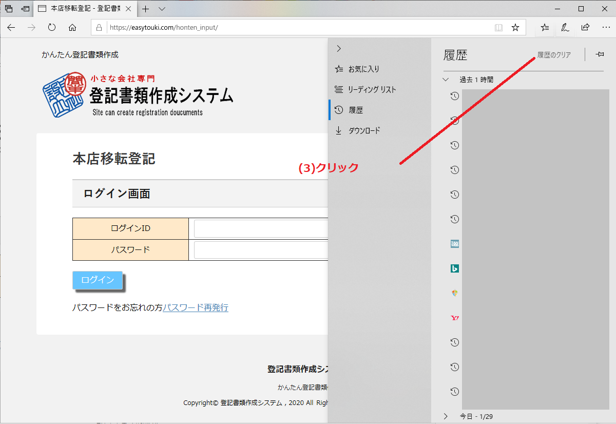 2.「履歴のクリア」をクリックします。
