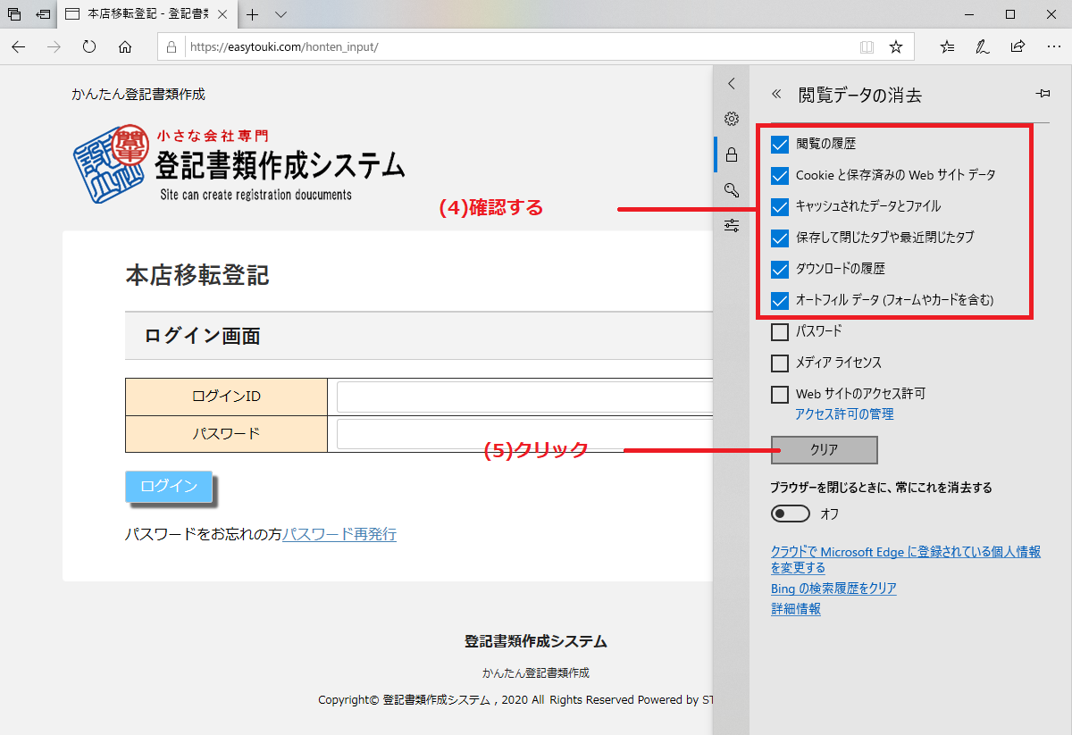 3.「チェック項目」を確認して「クリア」をクリックする。